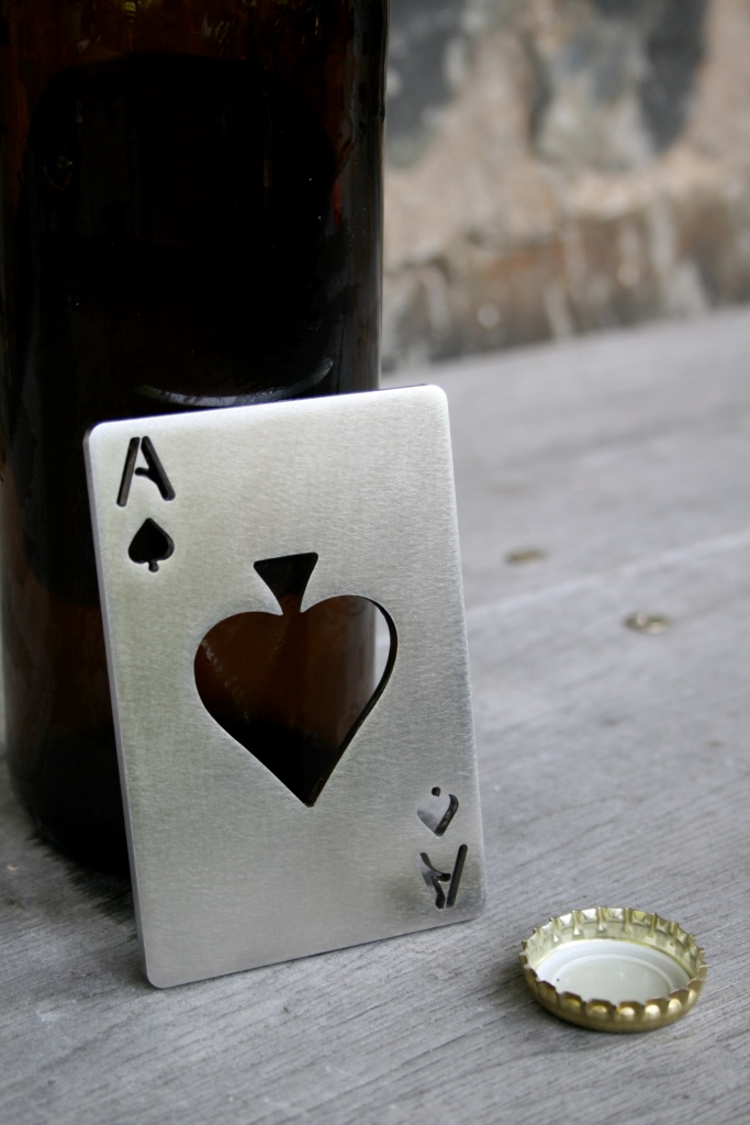 Dieser Flaschenöffner in ausgefallener Spielkartenoptik eignet sich perfekt als Geschenk.